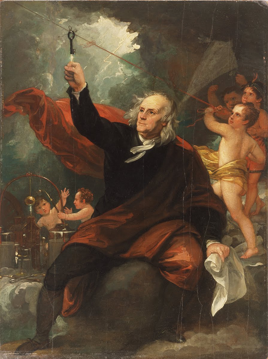 This dramatic painting by benjamin west commemorates the 1752 experiment in philadelphia in which benjamin franklin demonstrated that lightning is a form of electricity.