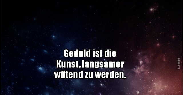 Geduld ist nicht einfach die faehigkeit zu warten es ist wie wir uns verhalten waehrend wir warten. Mehr geduld lernen in unserem taeglichen leben kann wunder fuer unsere geistige gesundheit und unseren wirtschaftlichen wohlstand bewirken und die welt vielleicht etwas weniger wie ein armseliges loch voller laeuse erscheinen lassen. Wenn beispielsweise das gewuenschte auf sich warten laesst der erhoffte anruf aussteht sich eine schwierigkeit vor unser ziel stellt und das leben einfach nicht so will wie wir uns das vorgestellt.